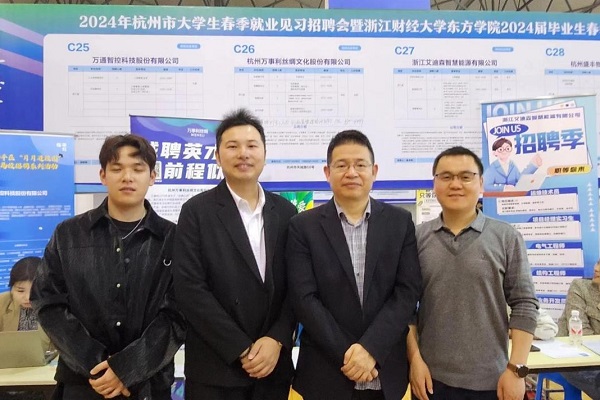 4月2日,伟德国际VICTOR1946党总支书记余健,党总支副书记宣刚带领毕业班辅导员老师前往“2024年杭州市大学生春季就业见习招聘会暨伟德国际victor19462024届毕业生春季双选会”现场,走访参加招聘会的杭州万事利集团有限公司和浙江中普连科技有限公司校企合作单位,并与现场学生交流,了解企业招聘需求及就业市场情况。
