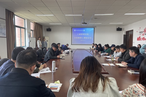 首先,院长陈晓阳先代表班子成员,向各位教工介绍了2022年学院取得的成绩,表示新学期学院的整体工作要缕清思路,调整重心,聚积力量,撸起袖子抓紧干。随后院长陈晓阳布置了学院新学期的重点工作安排。第一,规范毕业论文流程,提升教育质量。第二,坚持应用型导向,以校企合作、产教融合为抓手,推动工商原有专业和学科进行转型和升级,积极与地方产业链连接。