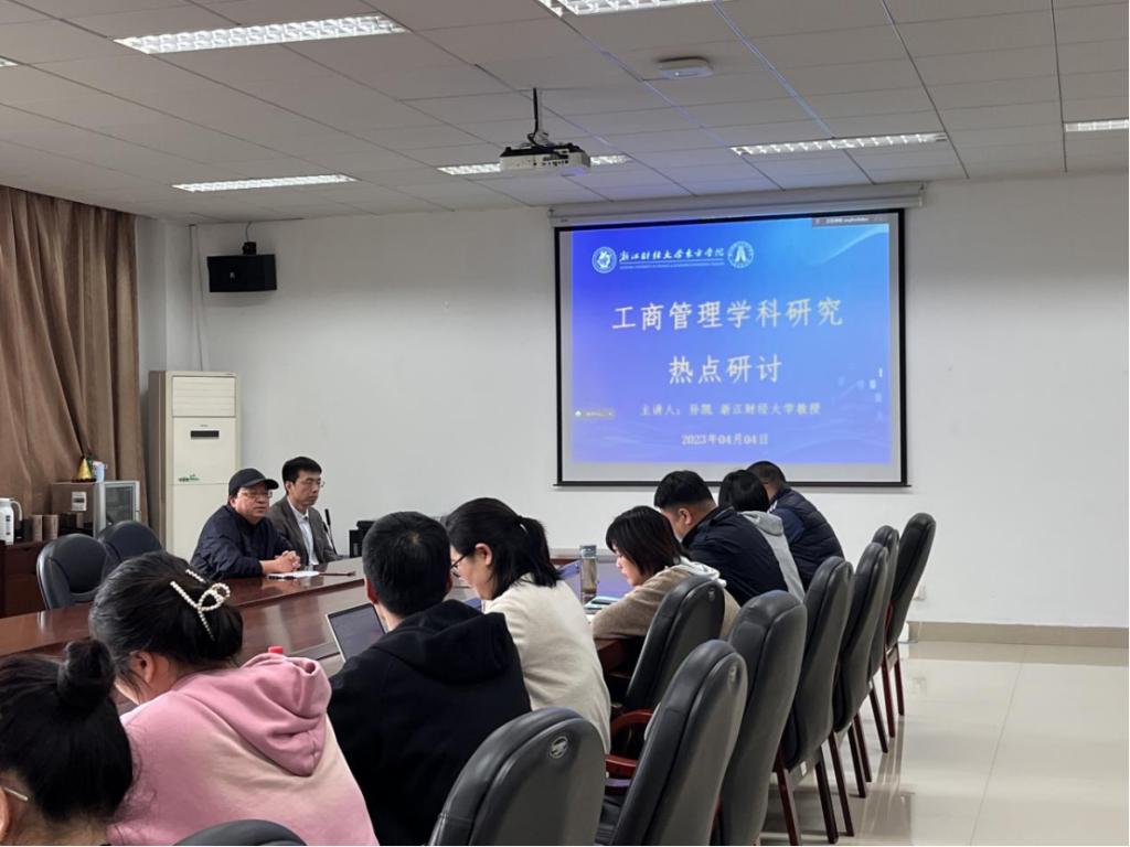 4月4日下午,伟德国际VICTOR1946与科技管理部联合举办的应用型学科建设之学术讲座“工商管理学科研究热点研讨”在3J-518举办。讲座由浙江财经大学伟德国际VICTOR1946学术委员会主任孙凯教授主讲,伟德国际VICTOR1946院长陈晓阳老师主持会议,近20名工商管理学科相关方向的骨干教师和青年教师参加了探讨。
