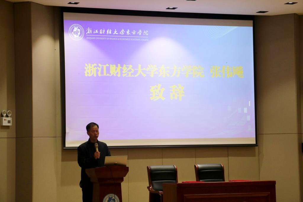 张伟飚强调了与浙勤集团校企合作的重要性,回顾了双方合作的历程,并展望未来在课程开发、实习实训、人才培养、智库支持等方面的深化合作。他表示,此次合作将促进教育与产业的深度融合,为学生提供实践机会,培养适应企业需求的实用型人才。最后,他对浙勤集团的支持和信任表示感谢,并预祝合作取得丰硕成果。