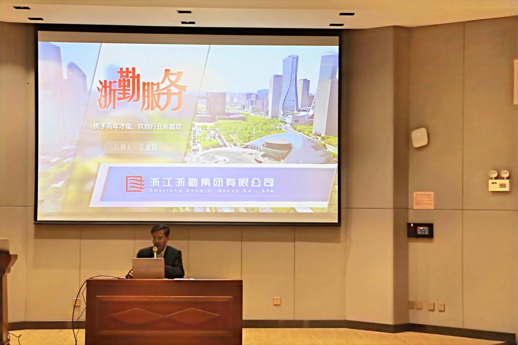 签约仪式圆满落幕后,吴建国为在场师生带来了一场精彩的企业宣讲。他不仅深入阐述了浙勤集团的企业文化和未来的发展蓝图,表达了集团对人才的迫切需求,详细解读了集团为优秀人才提供的各种广阔的成长平台和职业发展机会。此外,吴总还分享了自己的工作感悟,鼓励学生们要有远大的志向,勇于面对挑战,不断提升自我,以实现个人与企业的共同发展。他的话语充满了激励和期待,给在场师生留下了深刻的印象。这场宣讲,浙勤集团不仅展示了其作为其作为业界标杆的风采,也为学院学生们提供了宝贵的职业指导和启示。