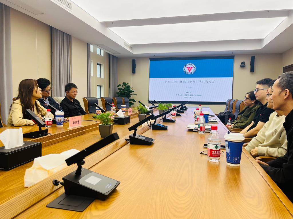 10月20日,学院邀请南京师范大学教授、区域经济与经济地理领域知名青年学者胡晓辉,开展《从演化到关系:国际区域经济韧性研究视角转向与展望》专题学术讲座;同时邀请浙江大学公共管理学院土地管理系百人计划研究员、博士生导师张衔春,以《区域空间一体化与地方土地财政博弈》为题开讲。两场讲座均由学院副院长戴钰慧主持,城市规划、城市环境、供应链管理、跨境电商等领域教师参会,现场研讨氛围热烈。