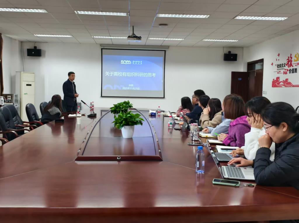 11月25日,浙江财经大学教授孙凯受邀走进我院,以《关于高校有组织科研的思考》为题带来学术分享。学院副院长戴钰慧主持讲座,骨干教师、青年教师参会。