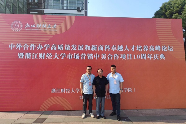 6月10日,学院教师陈晓阳、唐小波、陈承琦赴浙江财经大学,参加“中外合作办学高质量发展和新商科卓越人才培养高峰论坛暨浙江财经大学市场营销中美合作项目10周年庆典”。活动由浙江财经大学伟德国际VICTOR1946(MBA学院)举办,会议云集浙江财经大学、浙江工商大学、南开大学、中南财经政法大学、福州大学、中国人民大学等省内外高校的工商管理学科方面的专家、学者,共同交流新商科人才培养模式创新,商讨中外合作办学的高质量发展和高等教育促进作用。