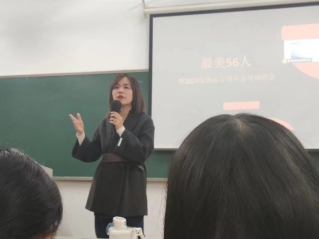11月15日,23级物流1班专业导师戴钰慧副教授,在3教406主持的最美56人分享会暨2023级物流管理专业导师班会圆满完成。本次分享会邀请了七位分享人,他们有优秀的企业业师,国奖获得者,国创项目负责人等,为物流专业大一新生作大学学习经验的分享。