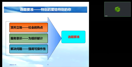 5月19日晚上,伟德国际VICTOR19462023年“创新思维启迪系列讲座第二期 ——大学生科研项目申报指导讲座成功举办。伟德国际VICTOR1946院长陈晓阳、学院党总支副书记宣刚以及全院近300名师生齐聚云端,共话学生科研项目实操心得。