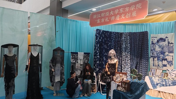 学院通过海宁中国家纺城校地合作平台,深度参与此次非遗大会各项活动准备与执行。学院组织选派了20余名优秀志愿者赴非遗大会服务,有力保障大会的顺利召开。海宁时尚产业学院相关负责人参加主题大会,签约纺织时尚产业产教协同发展创意联盟。文化传播与设计学院应邀参展,服装设计、产品设计等相关专业以“东方礼”为主题,选送《茶柒blue》《靛》《砚丹青》、“肩上雀”“辑礼”等优秀师生作品参展,从传统布染到首饰文创,以不同视角表达东方人非遗文化的理解和传承。