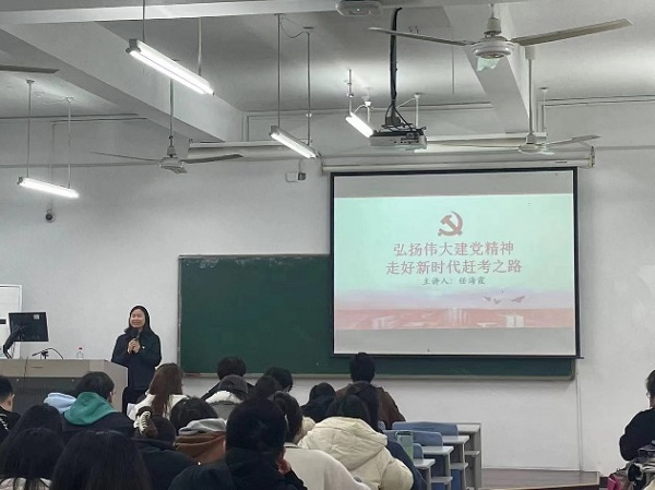 学院党总支于4月6日晚在3J-303开展了入党积极分子培训的第四讲,本次讲座向现场同学介绍了中国共产党的精神力量,以“弘扬伟大建党精神,走好新时代赶考之路”为主题,由组织宣传部副部长任海霞主讲。