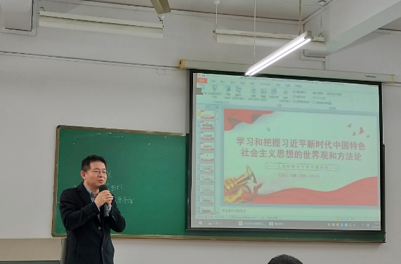 余健以“六个坚持”为重点向同学们讲述何为习近平新时代中国特色社会主义思想以及学习贯彻习近平新时代中国特色社会主义思想的重要性。学习贯彻习近平新时代中国特色社会主义思想能使我们有更加坚定的理想信念、深邃的人生智慧、火热的奋斗豪情,能激励着广大青年与时代同向同行,在实现中国梦的伟大实践中成长成才、建功立业。余健强调必须坚持人民至上,必须坚持自信自立,必须坚持守正创新,必须坚持问题导向,必须坚持系统观念,必须坚持胸怀天下。余健以“为天地立心,为生民立命,为往圣继绝学,为万世开太平”结尾鼓励同学们。