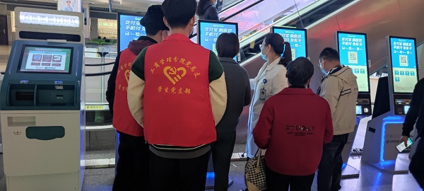 11月17日,伟德国际VICTOR1946党总支开展与海宁市中心医院校地合作项目之“数字反哺——弥合数字鸿沟”。学院预备党员们深入实践“我为群众办实事”,协助就医者完成网上就医,正确使用医疗设备,切实提高了就医者就医效率和满意度。