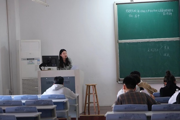 会议伊始,支部书记马硕晨紧扣党的二十大精神,进行述职报告。她聚焦三点:一是对思想政治方面、组织生活方面、活动开展方面进行简短总结,表明党支部成员均以实际行动迎接党的二十大的顺利召开;二是分析党支部在工作中存在的一些不足,例如对党的创新理论学习不够深入、对于全面加强学生的思想引领还有差距;三是列举党支部的未来工作思路,强调党支部党员需完善党支部年度学习计划、强化党员意识。马老师鼓励党支部成员要总结前期工作经验,在现有的基础上继续开展保持党员先进行教育活动,充分发挥党支部的战斗堡垒作用,创造出更好的成绩。