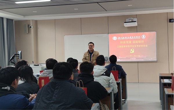 宣刚鼓励同学们坚定考研的目标,调整好自己的心态,树立起必胜的信心。在最后的一个月里,大家要把心态调整到最佳状态,越是到了关键时刻,越要保持冷静,稳扎稳打走好最后一段路程。他叮嘱同学们在复习阶段要保持良好的学习状态,按照预先制定的计划合理备考,不骄傲不急躁,持续努力,坚持到最后,不留遗憾。同时,宣刚也强调了劳逸结合的重要性,呼吁同学们在备考过程中不必过于紧张,要保持身心健康,以最好的状态迎接挑战。最后,他祝福全体考生能够取得优异的成绩,实现上岸的梦想!
