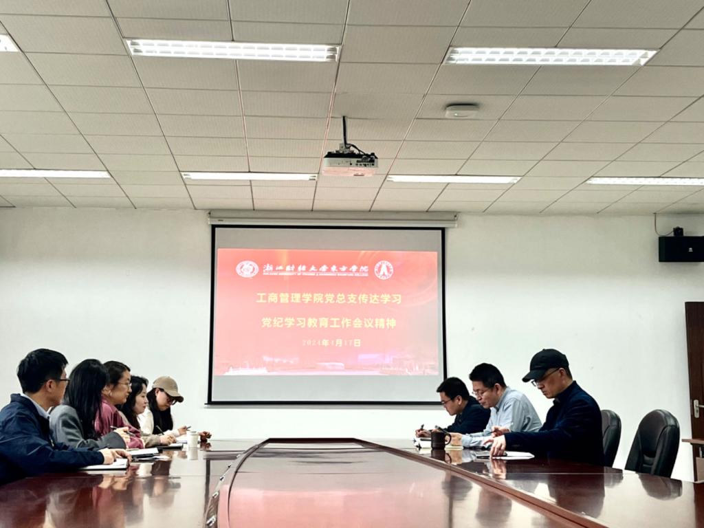 4月17日,伟德国际VICTOR1946党总支召开理论中心学习会,党总支书记余健传达学习东方学院党委(扩大)会议关于研究部署党纪学习教育工作的会议精神。学院党总支委员、各党支部书记参加会议。
